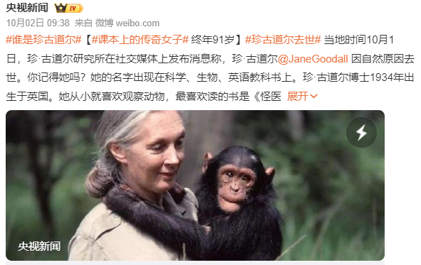 估计很多人认识珍·古道尔,是从课本上的一张照片。