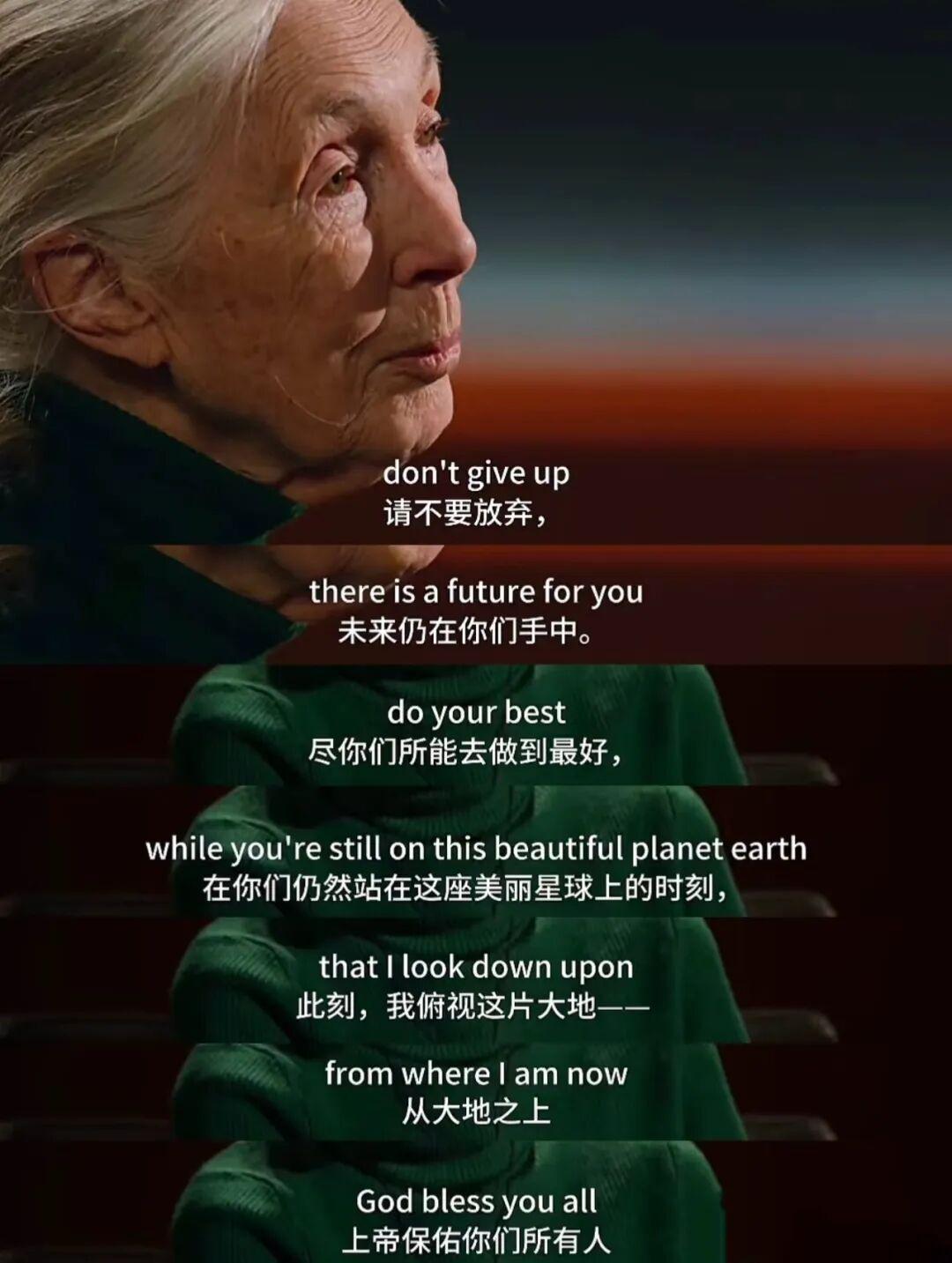 她在生命的尽头仍在强调「希望」,她说哪怕地球在崩坏、气候在恶化,也不要放弃对世界的信念。