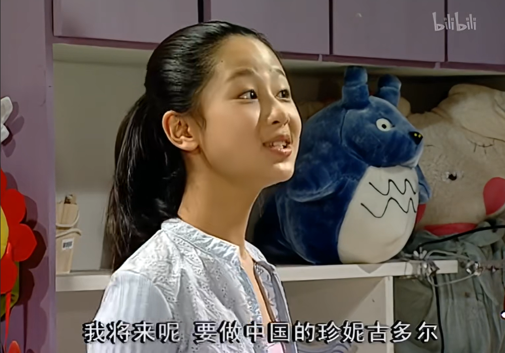 《家有儿女》中,小雪曾一度迷恋珍·古道尔,刘梅还在她的卧室里做了一个温馨的黑猩猩窝。