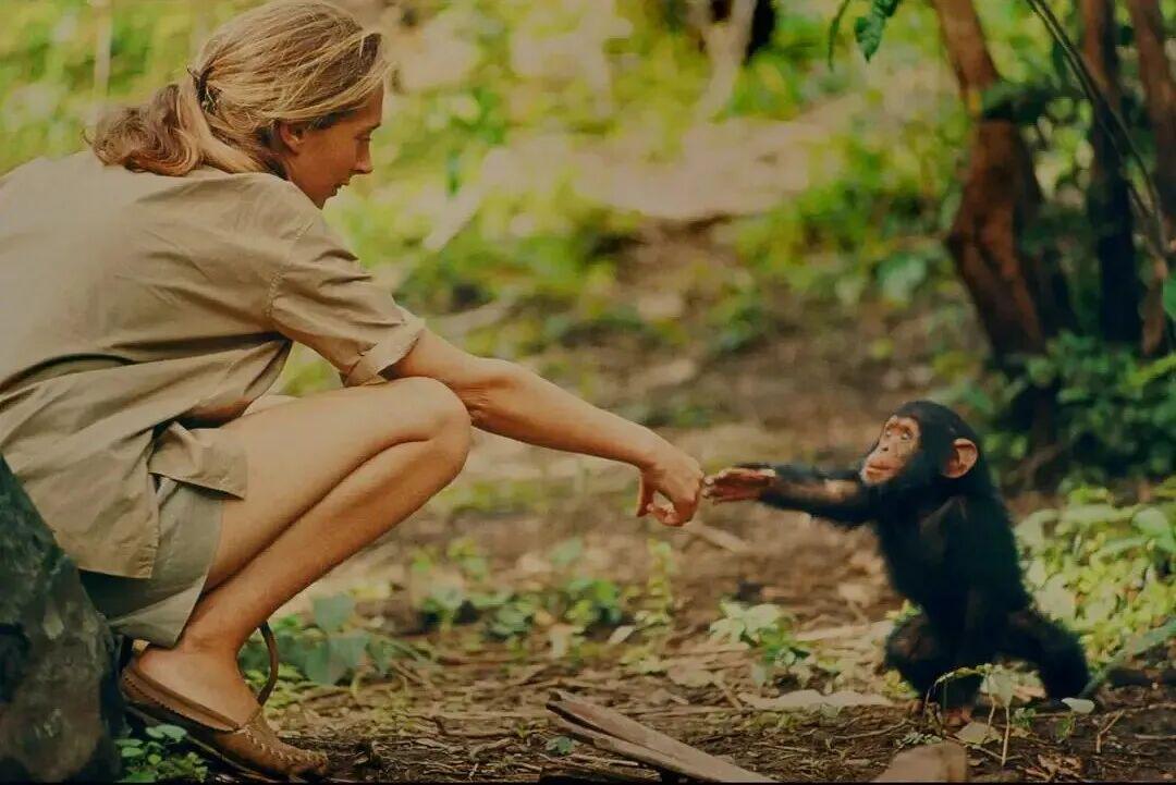 她会为每只黑猩猩取名,会贴近它们,为它们抓虱、治病,和它们成为朋友,关心它们的子子孙孙。